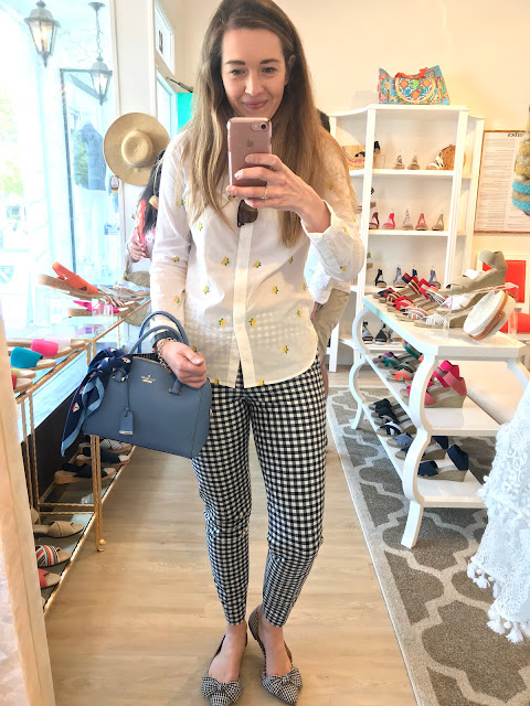 Lemon shirt. Gingham pants (on sale right now! I wear a 6 tall).